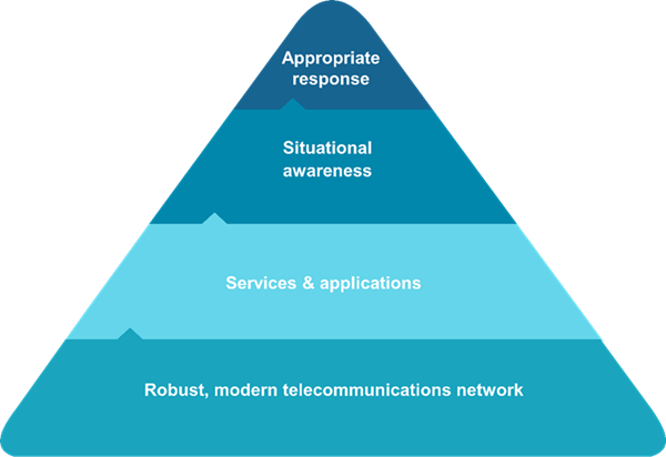 Situational awareness, services, and applications can only work efficiently if they are underpinned by a firm foundation in telecommunications network infrastructure, as illustrated in the figure. Another important dimension of effective telecommunications approaches lies in system and application security. For the system or solution to do its job over an extended period, it must include cyber and physical security arrangements to protect it from those that pose a threat. It is important that these security arrangements are “industrial grade” using the best available technology from the wider world of Internet and commercial systems. Let us also not forget physical security as there is no point in having world class cyber security if the physical security is not up to par. Easy access to cabinets and equipment would enable bad actors to undermine cyber security arrangements.
