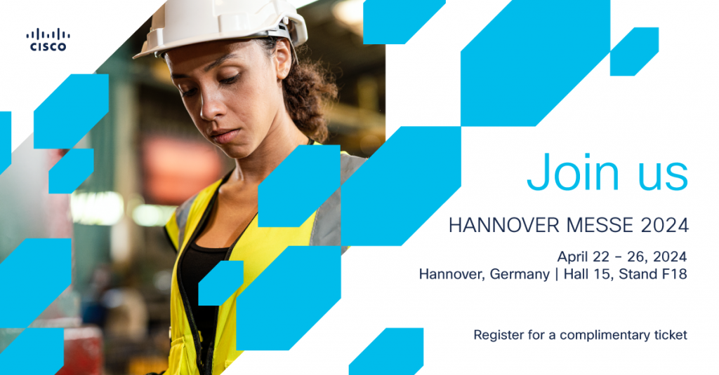 We invite you join us on this journey as we build a bridge between industrial solutions for today and a sustainable foundation for tomorrow. Visit Cisco at Hannover Messe 2024 at April 22—26, 2024 | Hannover, Germany | Hall 15, Stand F18.
