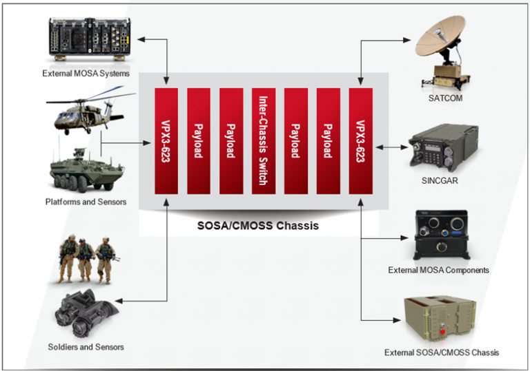 The military adopted SOSA (Sensor Open Systems Architecture), C5ISR/EW Modular Open Suite of Standards (CMOSS), and OpenVPX standards to address the challenges that proprietary systems brought such as limited interoperability, security vulnerabilities, long development cycles, and limited scalability. The adoption of SOSA, CMOSS and OpenVPX helps the military modernize its communications systems, and addresses the issues they were facing by promoting interoperability, reducing costs, accelerating development cycles, and improving security. These standards support the reduction of size, weight and power of communications systems while increasing their flexibility and adaptability.