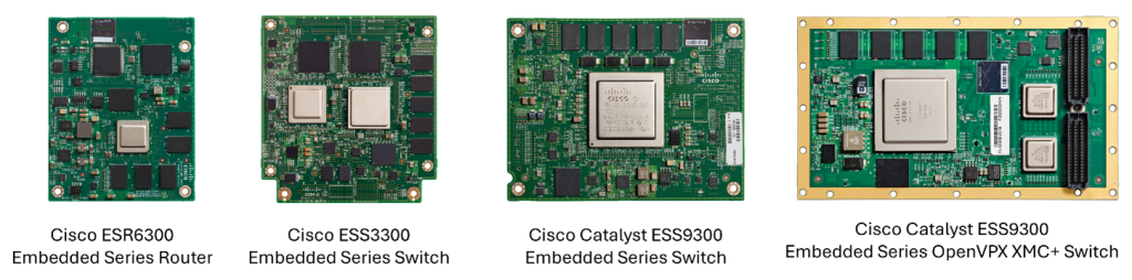 The new Catalyst ESS9300 Embedded Series switch aligns with SOSA, CMOSS, and VPX standards. It runs Cisco IOS XE software which brings in the richness of enterprise grade networking feature sets for these military use cases. IOS XE also brings advanced security capabilities such as Layer 2 encryption, device authentication, port security, and network segmentation that are necessary to protect their critical infrastructure and communications, and advanced networking capabilities such as EIGRP for maintaining reliable communications by quickly recovering from network topology changes, such as link failures.