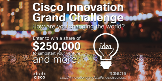I agree! Cisco’s Innovation Grand Challenge is open for submissions through August 31, 2016. The winners will be announced in November.