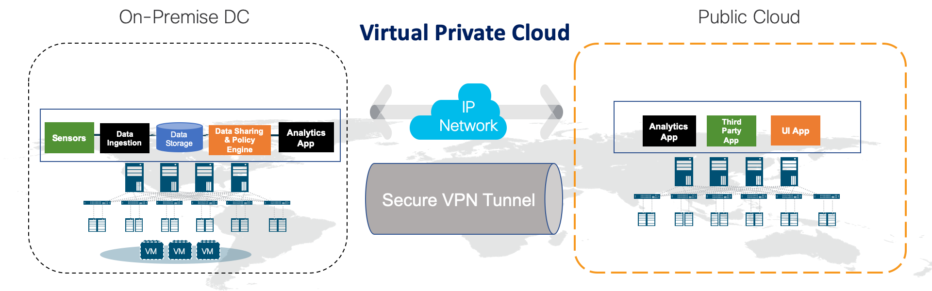 - Security Posture – we can store and process extremely sensitive information on-premises while using enhanced processing and additional memory from the cloud as a public software service. Further, enabling a consistent security posture, governance, and compliance through a common policy abstraction