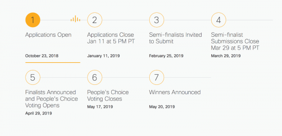 Semi-finalists will be invited to submit another round of questions on February 25 and the window will close for this round on March 29.