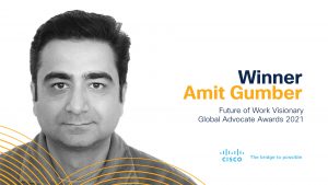Congratulations to Amit Gumber with HCL Technologies Ltd, who was named our Future of Work Visionary! This category evaluated nominees on their journeys to transform their workplaces from onsite to remote or hybrid environments. Nominees were asked to provide quantitative business results, and Amit shared how his company used Cisco Security solutions to secure network access through dual factor authentication, and Cisco Webex solutions to enable full remote worker collaboration.