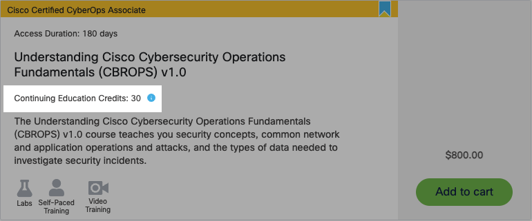 For example, here is the course aligned to the CyberOps Associate certification exam, CBROPS: