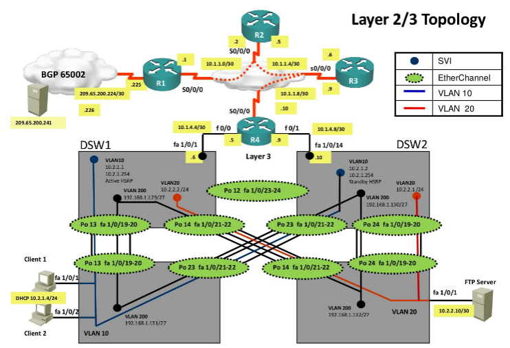 Each case study revolves around a different network infrastructure and will test your knowledge of VLANs, trunks, STP, EtherChanel, FHRPs, EIGRP, OSPF, BGP, NAT, ACLs, SSH, IP SLAs, route redistribution, DHCP, NTP, and AAA.