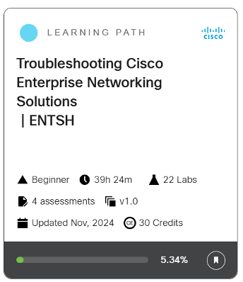 Check out Troubleshooting Cisco Enterprise Networking Solutions | ENTSH in Cisco U., and learn to troubleshoot like a pro! View Learning Path