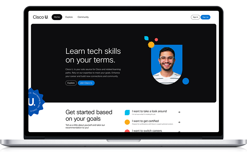 Cisco U. guides learners and teams to their tech learning goals. Whether you need training to seek a certification, role, or solution, we have you covered, with courses, a vibrant community, and deep content for both Cisco and third-party technologies, shaped to how you learn.