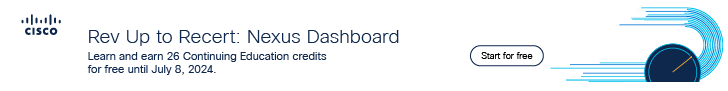 Now through July 8, 2024, the Cisco Data Center Nexus Dashboard Essentials | DCNDE Learning Path is available in Cisco U. for free. It’s not only an opportunity to learn how to manage your Cisco Nexus Dashboard (and the Fabric Controller application on top of it) for free, but if you’re an active Cisco certification holder, you can also gain some sweet Cisco Continuing Education (CE) Credits to boost your recertification journey—up to 26 CE credits, in fact.