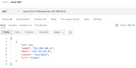 2. We are going to build a poor man’s IPAM, save IP address and its corresponding information (mask, vrf, status… etc.) to a database and allow Flask to expose an API endpoint into the data. To do so, let’s create an instance of Flask and TinyDB.