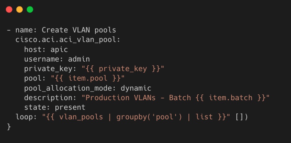 Let’s consider a real-world scenario where you need to create 200 VLAN pools in an ACI APIC environment: