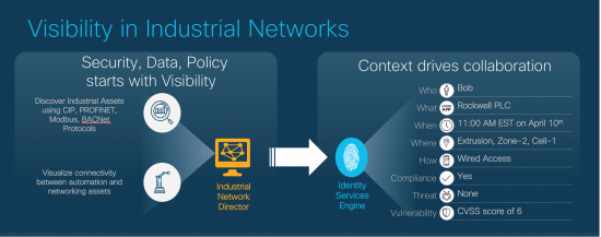 Visibility – Managing data, implementing policy, and enforcing security in the process network requires these systems to have visibility to plant floor assets within the context of observed behaviors.