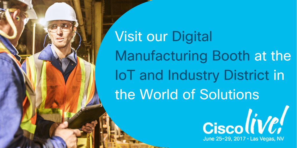 Are you an Embedded IT manufacturing professional (An IT person who also works in operations) and you’re headed to Cisco Live in Las Vegas June 25-29, 2017 at Mandalay Bay? You need to swing by the Manufacturing demos in the IoT and Industry District in the World of Solutions to learn how Cisco can help enable your Digital Factory Core. If you are not attending, it’s not too late to join us by registering now.