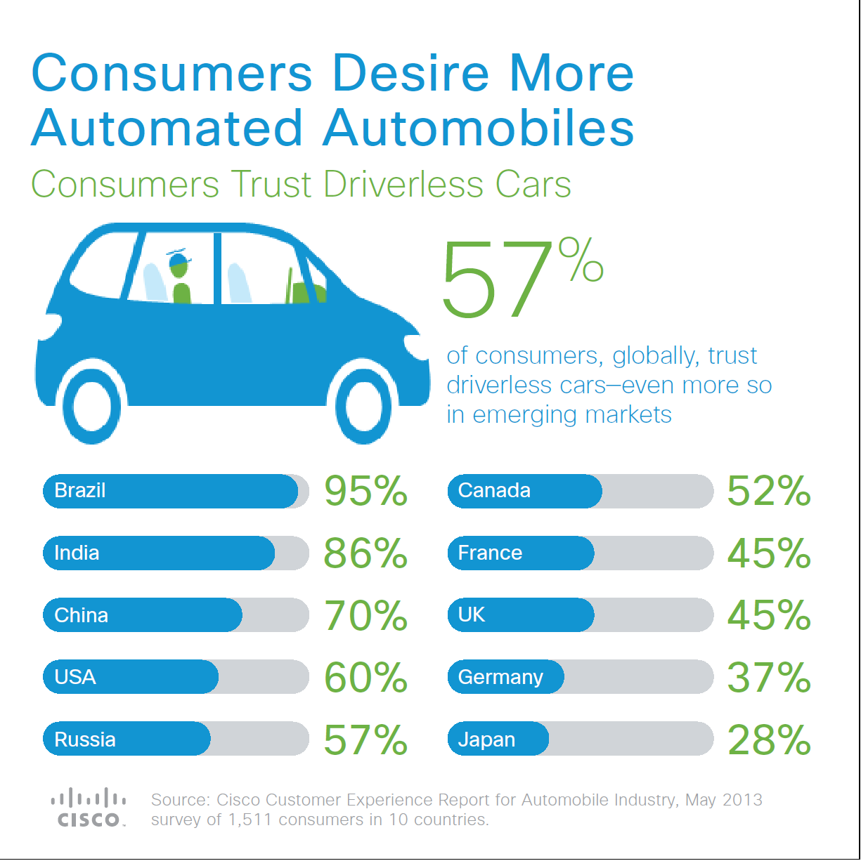Cisco Consumer Experience Report for Automotive Surprises Many: Consumers Desire More Automated Automobiles, According to the Cisco Study
