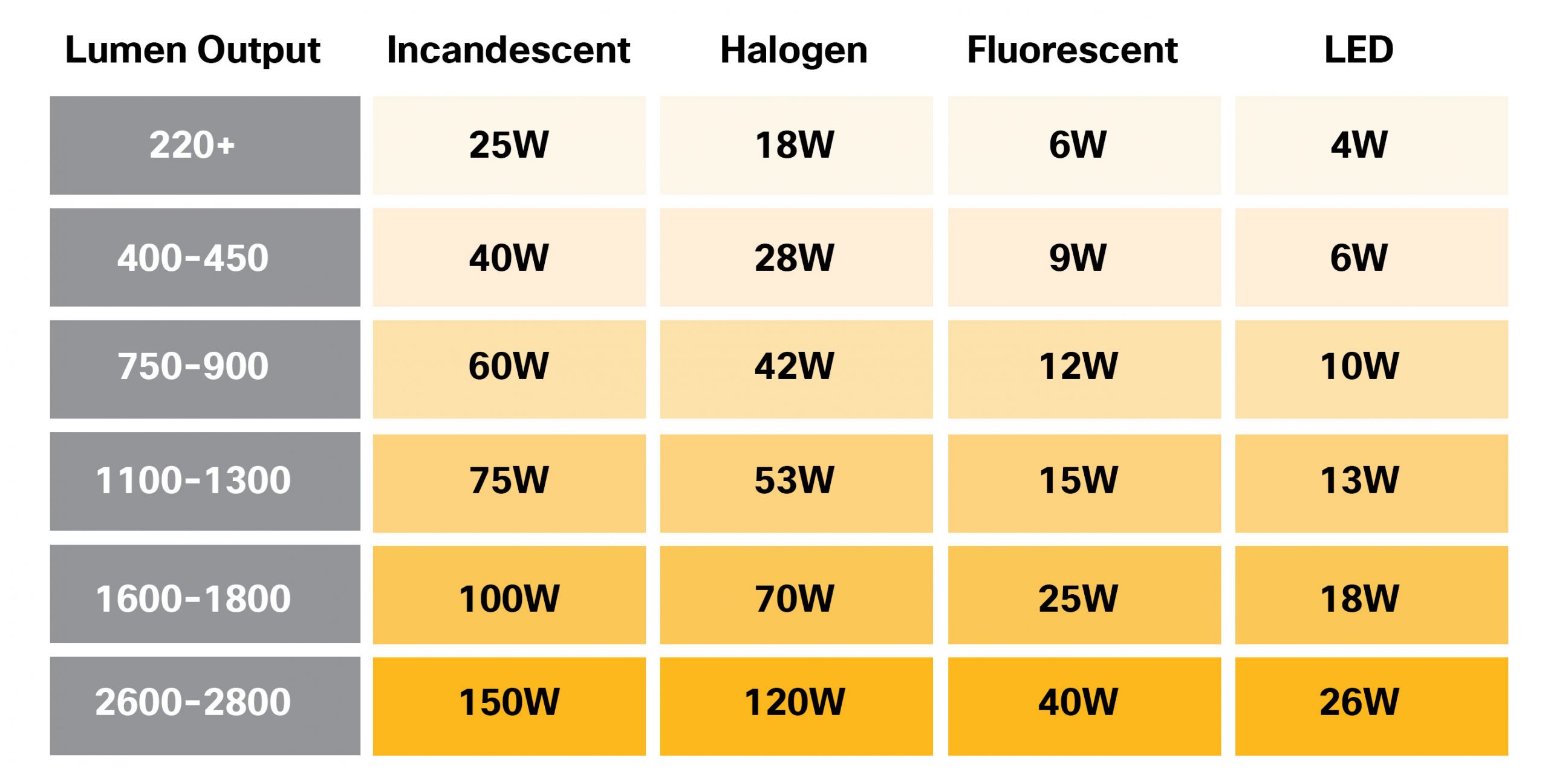 LED lights also last longer. They have a typical life span of over 50,000 hours, compared to 30,000 hours for a T8 fluorescent or worst case an incandescent bulbs life of 750 hours.