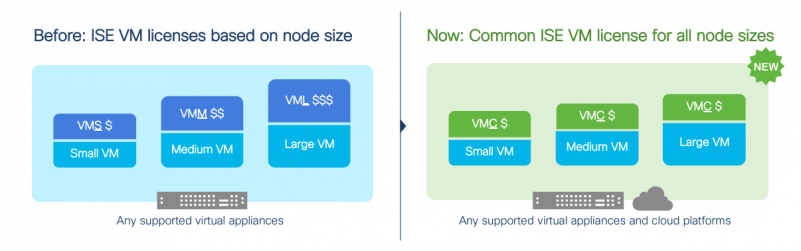 Along with the flexibility of deploying ISE on the platform of your choice, we now offer a simplified Virtual Machine (VM) license to smoothly move the workloads across the on-premise and cloud virtual platforms.