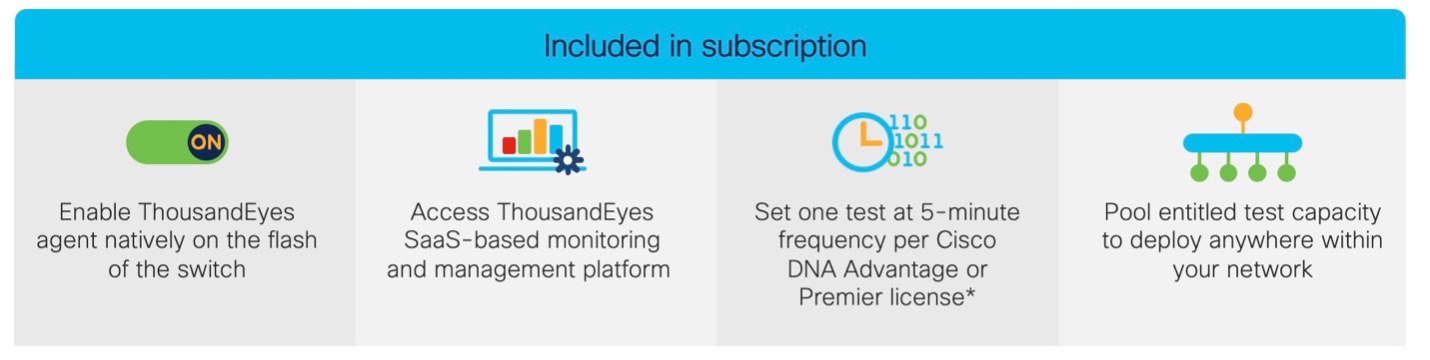 Not to mention it is cost-effective. There is no extra hardware, software, or license required to leverage ThousandEyes with this entitlement.