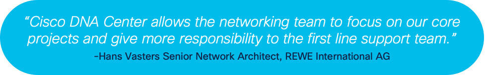 Even large organizations with the best networks, like REWE International, have issues. Freeing up IT time is important when you have 5000 retail locations across Europe and only eight full-time employees on your networking team. After integrating Cisco DNA Center with Assurance, REWE gained the ability to simplify troubleshooting and leverage network insights.