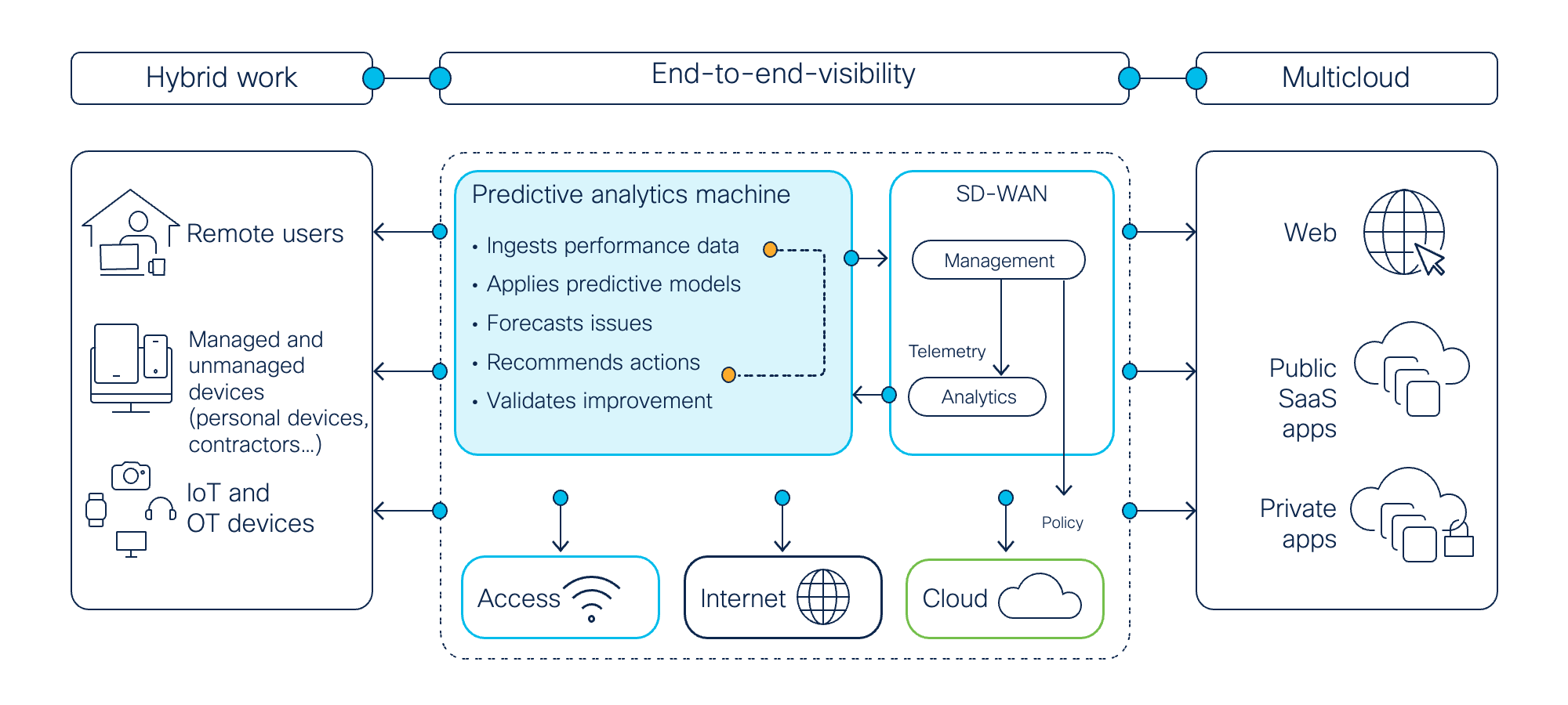 It’s time to move from reactive to proactive operations management through end-to-end visibility and AI/ML-powered predictive analytics. It’s time for a consistent way of automating operations, analyzing and diagnosing issues, and assuring the user experience across all the different networking domains.