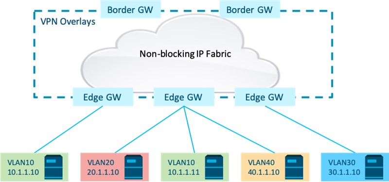 - A layer-3 VPN overlay to enable inter-subnet routing.