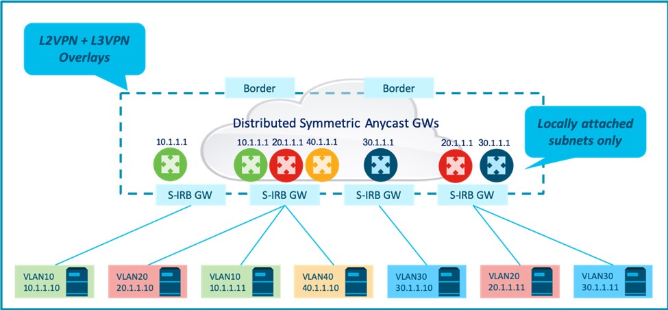 - Layer-3 (SVI) interfaces for ALL overlay subnets for which it is a first-hop GW.