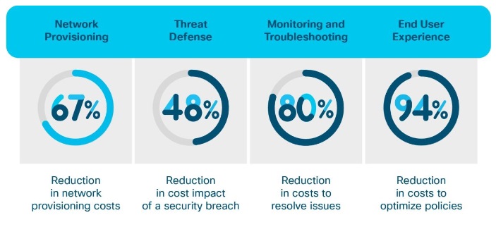 Sometimes you may not be able to show a positive ROI depending on the size or complexity of your network. But we have found that on average the design, provisioning and maintenance time for IT staff can be reduced by over 67% with a payback period of under three years, and with downtime reduced by over 80%. And that’s pretty significant.