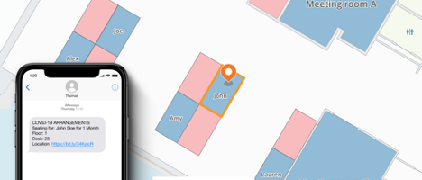- Hot Desking: Employees can select and book their desks in advance, allowing cleaning staff to know which desks to clean and disinfect in between uses. With PIR sensors and Indoor IoT services, employees can see in real-time which desks are occupied. Enterprises can map out desks and assign color schemes and names to visually convey the new safe seating arrangements.