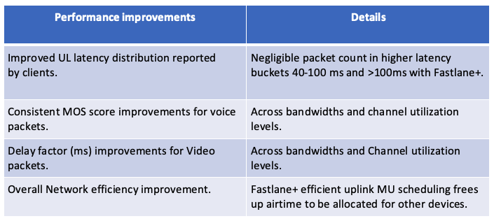 In a nutshell, Fastlane+ enhances the user experience for latency-sensitive voice and video applications in a high-density user environment by improving the effectiveness of estimating real-time application demands for the supported 802.11ax clients.