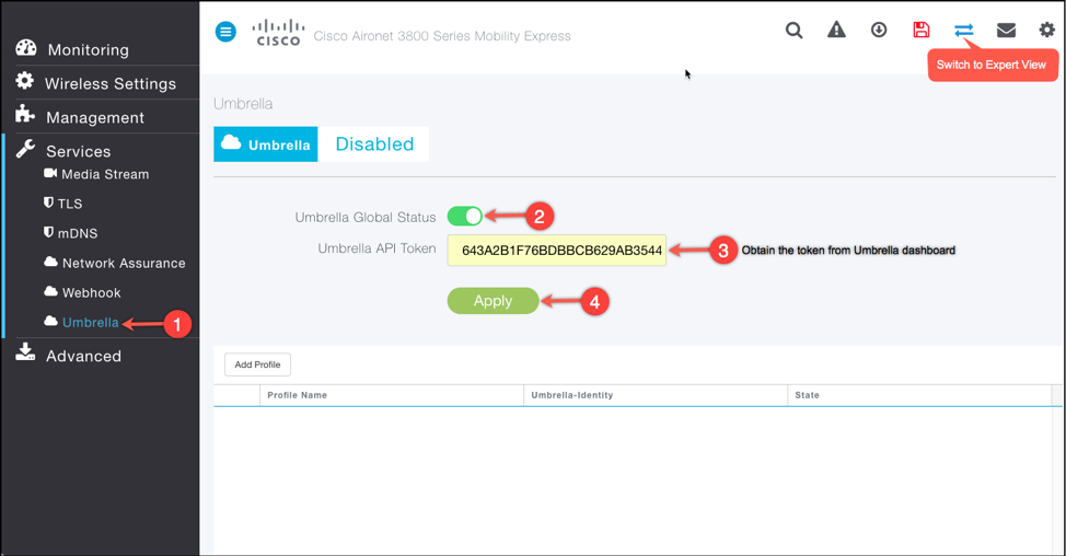 Step1: Enable Umbrella and enter the Umbrella API Token