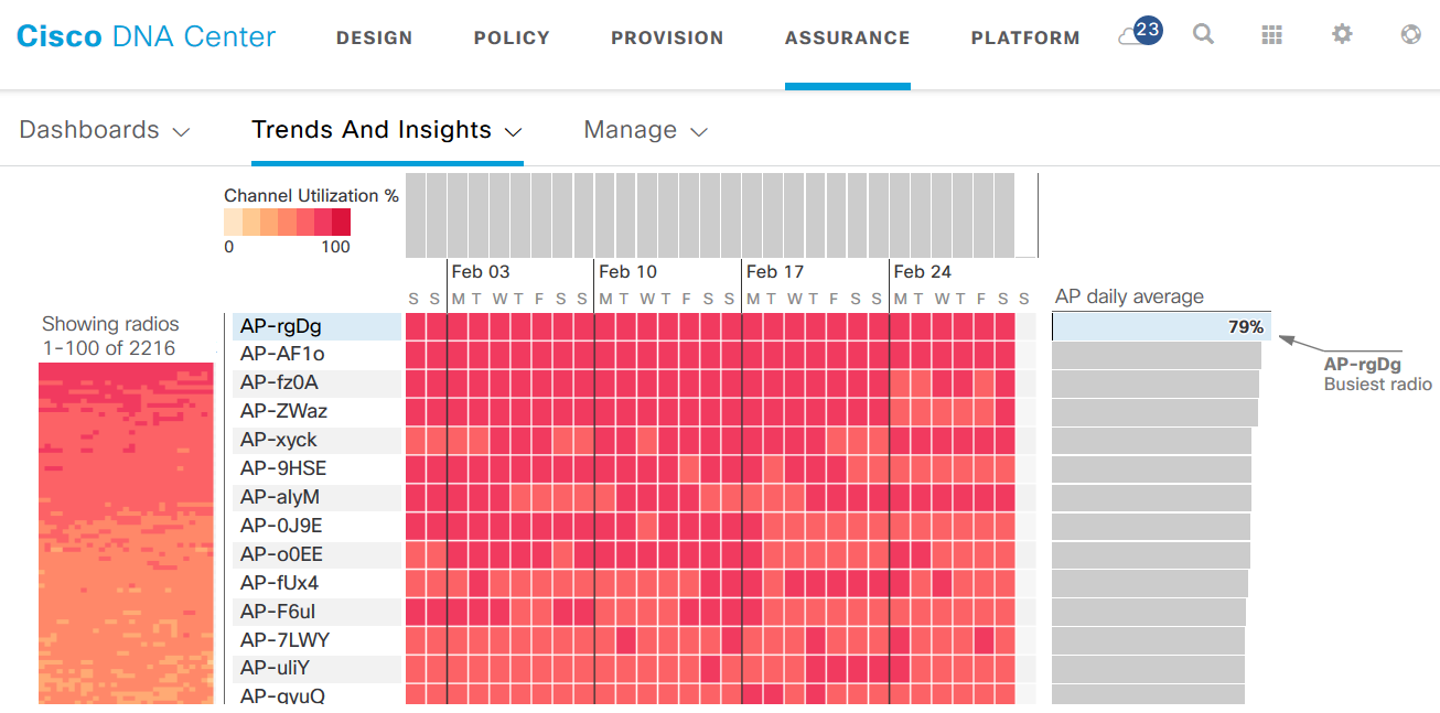 Now let’s look at how you can use the AI/ML in Cisco DNA Center to quickly locate areas in your campus network that fit these challenging conditions.