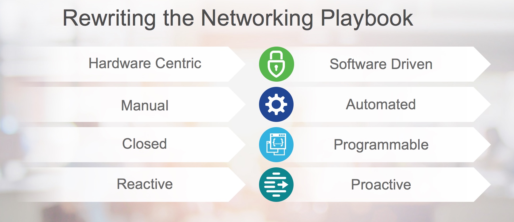 So what does a digital-ready network look like? While SDN has been about a software driven approach to networking, it has also resulted in more automation capabilities that can help free up the time IT spends managing and operating their networks. More programmability allows organizations to tap into the intelligence within the network and create more business value. Lastly in order for networks to become more proactive and resolve issues before they occur, analytics will be key to making networks smarter.