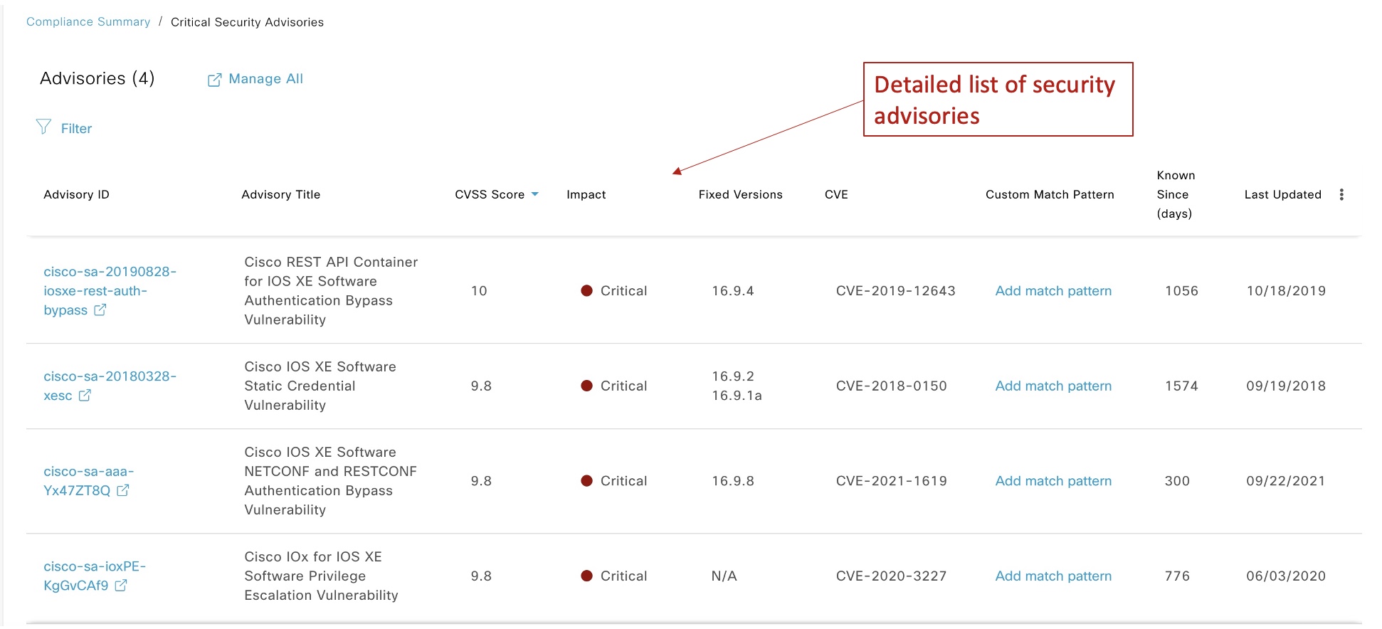 Devices with critical security vulnerabilities will also trigger a compliance check as shown in the snapshots below:
