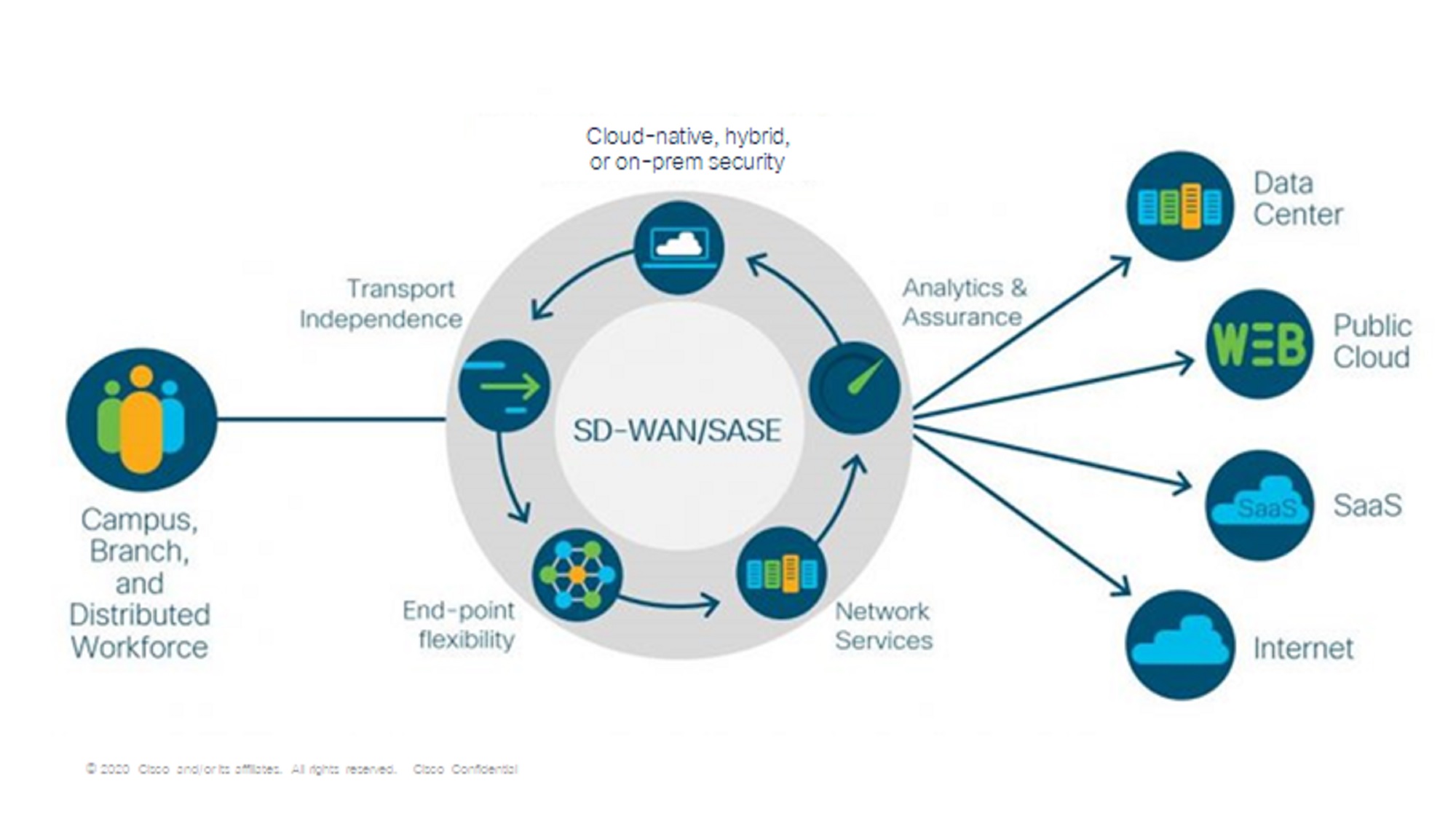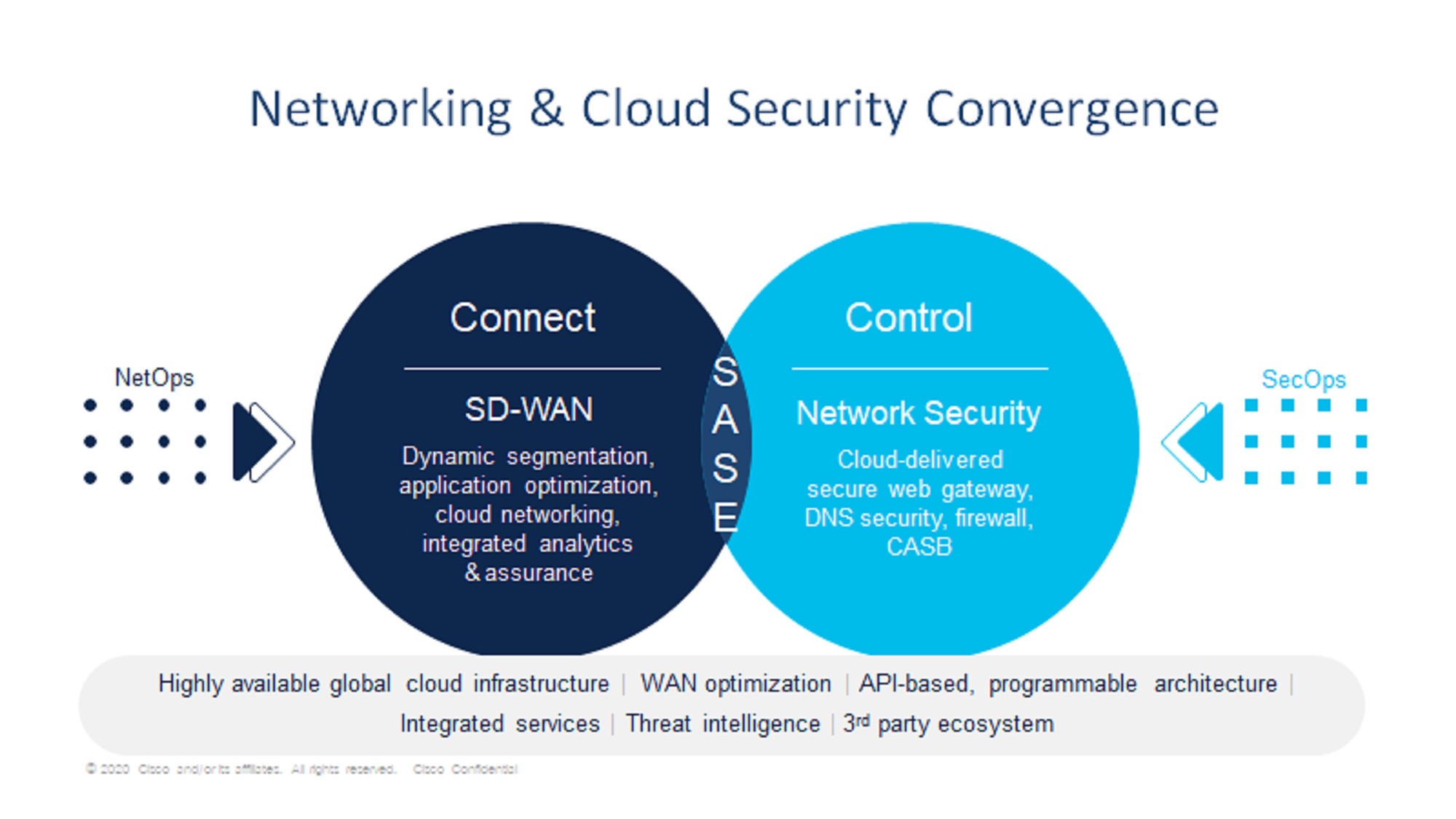 - Converge: Bringing together networking and security functions to deliver faster, secure connections in a flexible consumption model that scales rapidly up or down. This is the integration of Cisco SD-WAN and Cisco Umbrella.