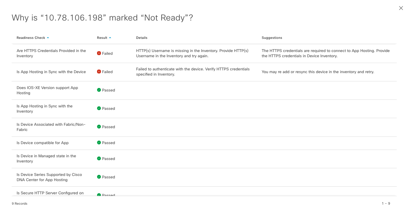 One of the challenges with Cisco devices that support app hosting is that different devices have different capabilities enabling them to support only some apps based on which image they run or what hardware they have. Cisco DNA Center helps customers solves this conundrum by running a bunch of tests on each device and telling them if the device is ready for app hosting as well as what it may be missing.