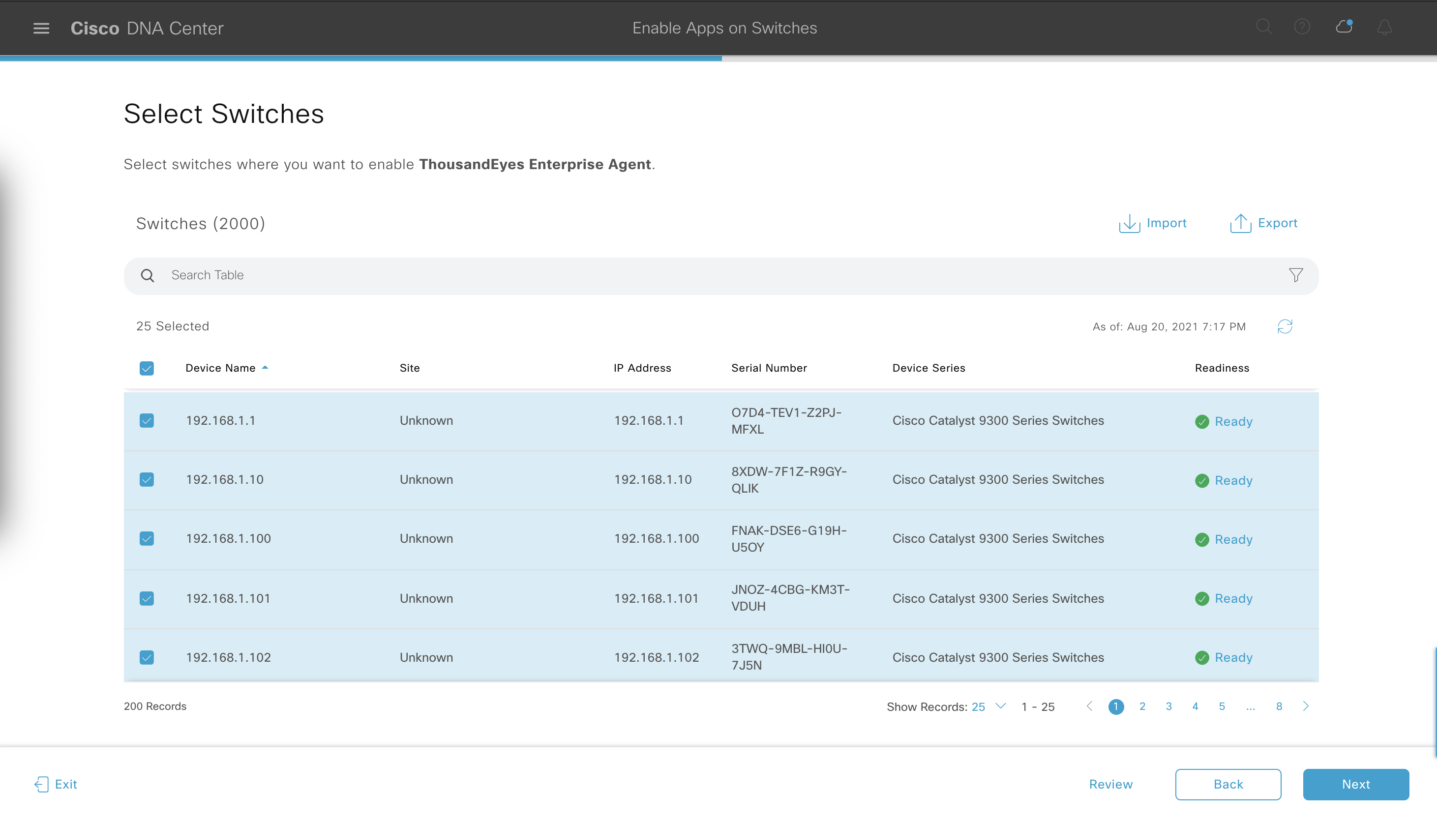 The Cisco Thousand Eyes can be installed across on several vantage Catalyst devices with this one workflow.