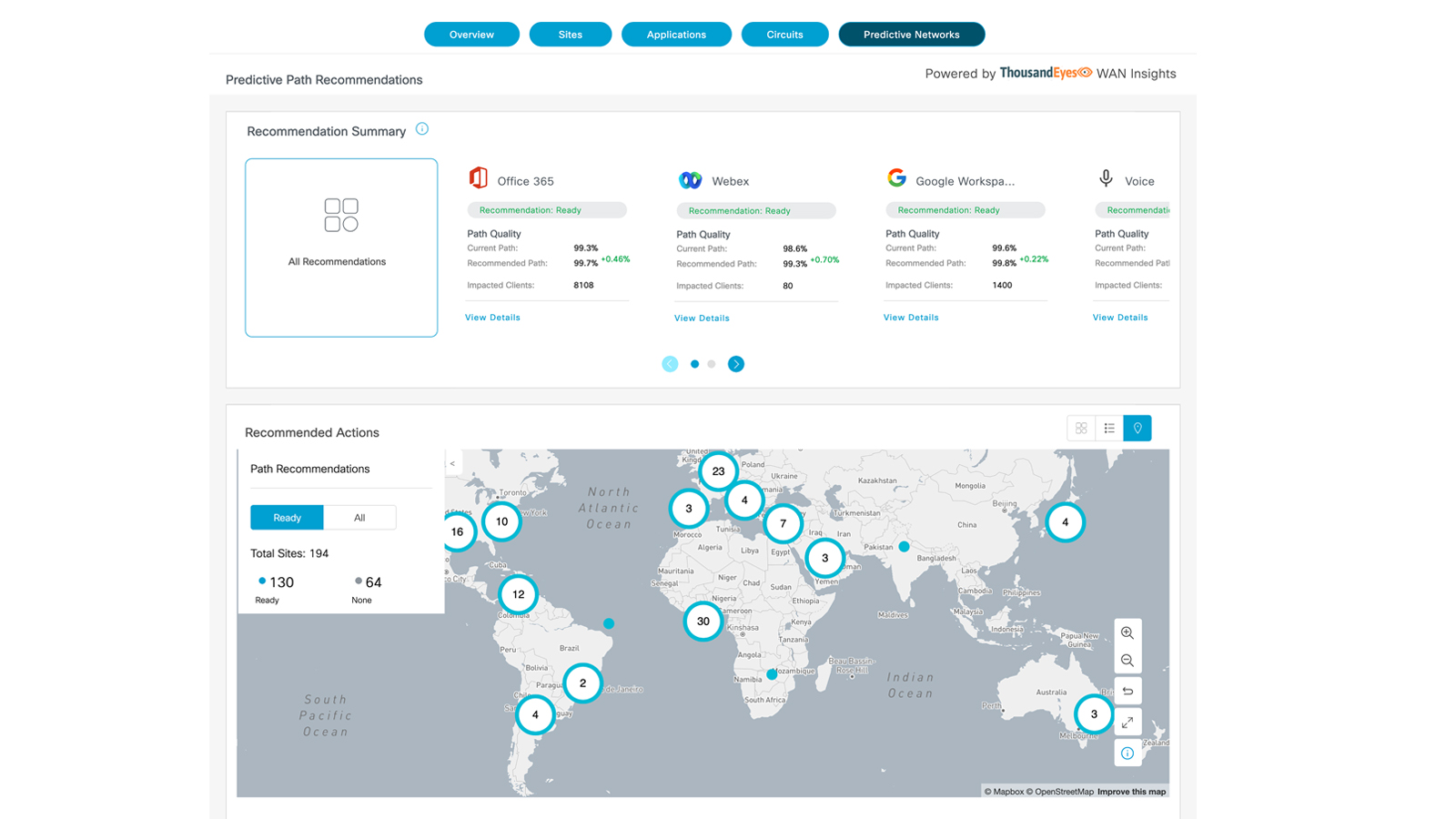 Network Admins/Operators can leverage the visualizations that are available in Cisco ThousandEyes and SD-WAN to view, monitor, and validate the effectiveness of the predictive model recommendations.