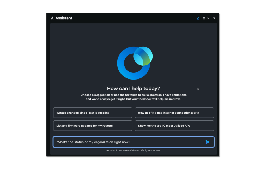- Monitoring: Ask “What’s the VPN status and health of my Denver HQ10 network?” Get a snapshot of your network and device status, subnets, VPN peers, and more.