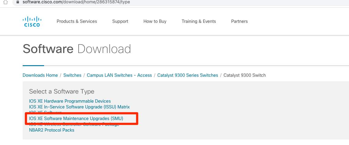 Let’s get geeky and demonstrate how straightforward and easy it is to deploy SMU’s for PSIRT’s and be compliant in minutes. Click here and search for the model of switch you own. Then look at the available upgrade: (Note that Cisco DNA Center will automatically alert you of any SMU or PSIRT the moment that they are available – right inside of the dashboard).