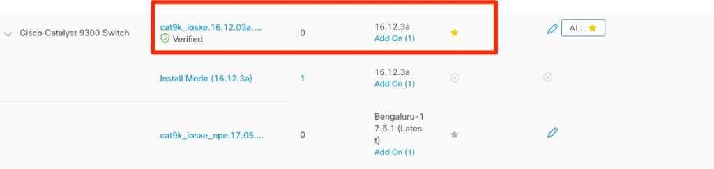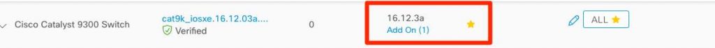 The administrator can proceed to import the SMU or PSIRT into Cisco DNA Center SWIM, after the SMU import note that the golden image will show an available “Add On” as demonstrated below