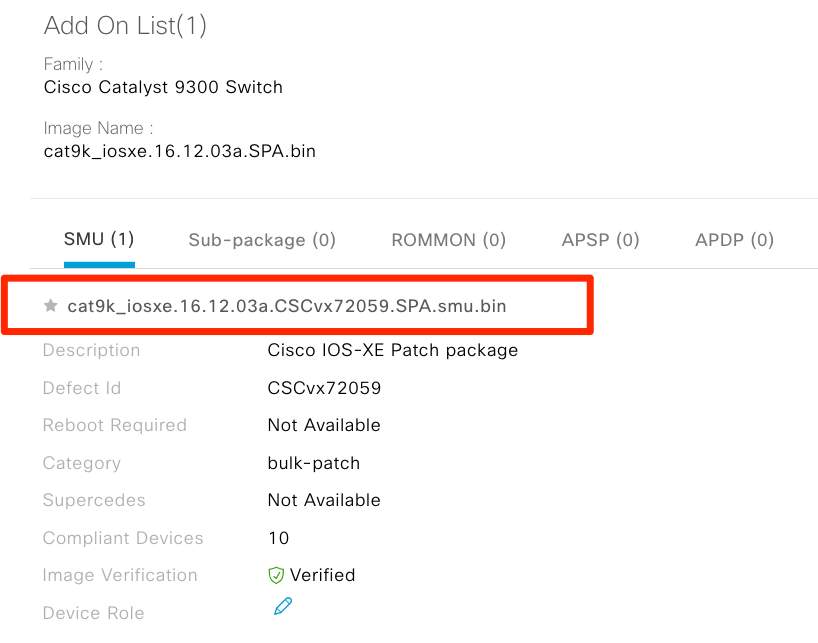 Now the SMU is marked as golden it is ready to be deployed to the network