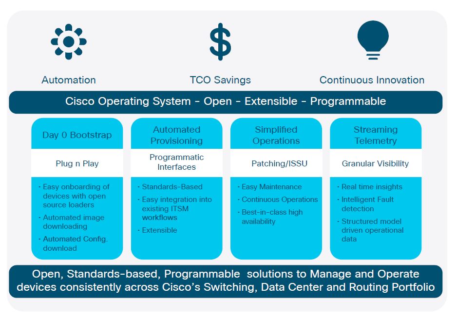 The dependence on always-on connectivity is the fundamental reason that Cisco, the foundation of the internet and enterprise networking, re-architected our IOS XE network operating system to create a common code platform for switching, routing, wireless, and wired infrastructure. At the controller level, IOS XE provides programmatic access and visibility into the telemetry and performance analytics running on wireless access points and Catalyst switches. This evolutionary step, along with fast, high capacity, secure hardware, ensures that networks are the dependable foundation that makes enterprise digital transformation projects possible.