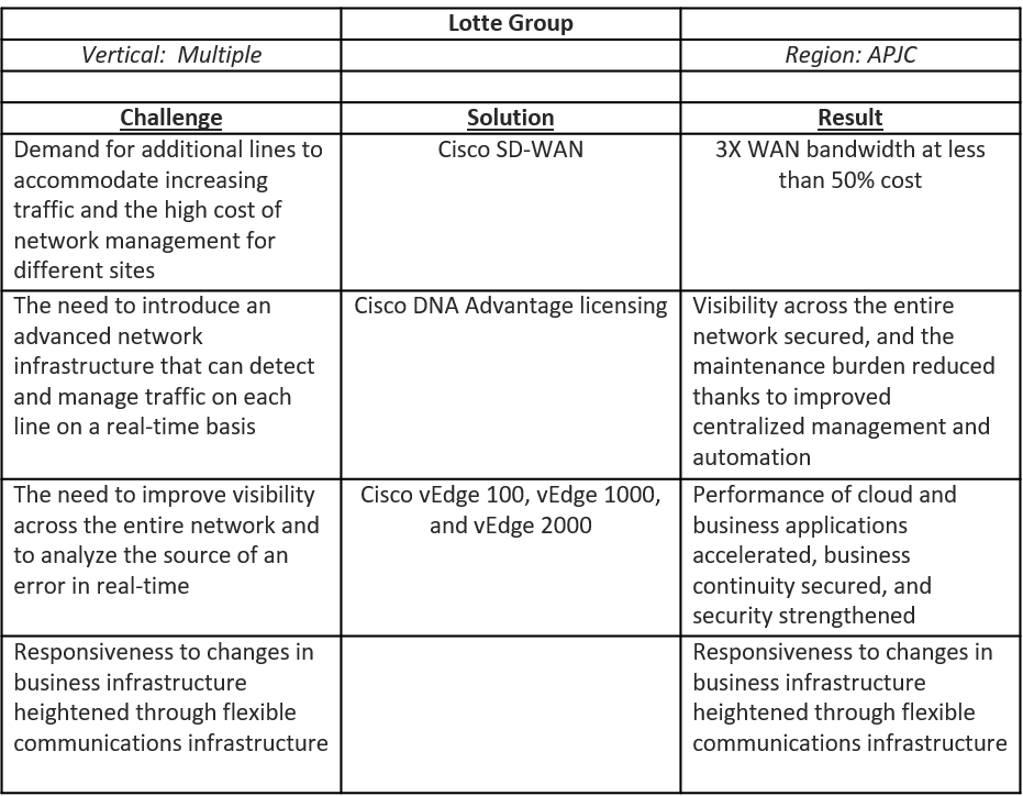 - Read more about Lotte and their Cisco SD-WAN deployment.