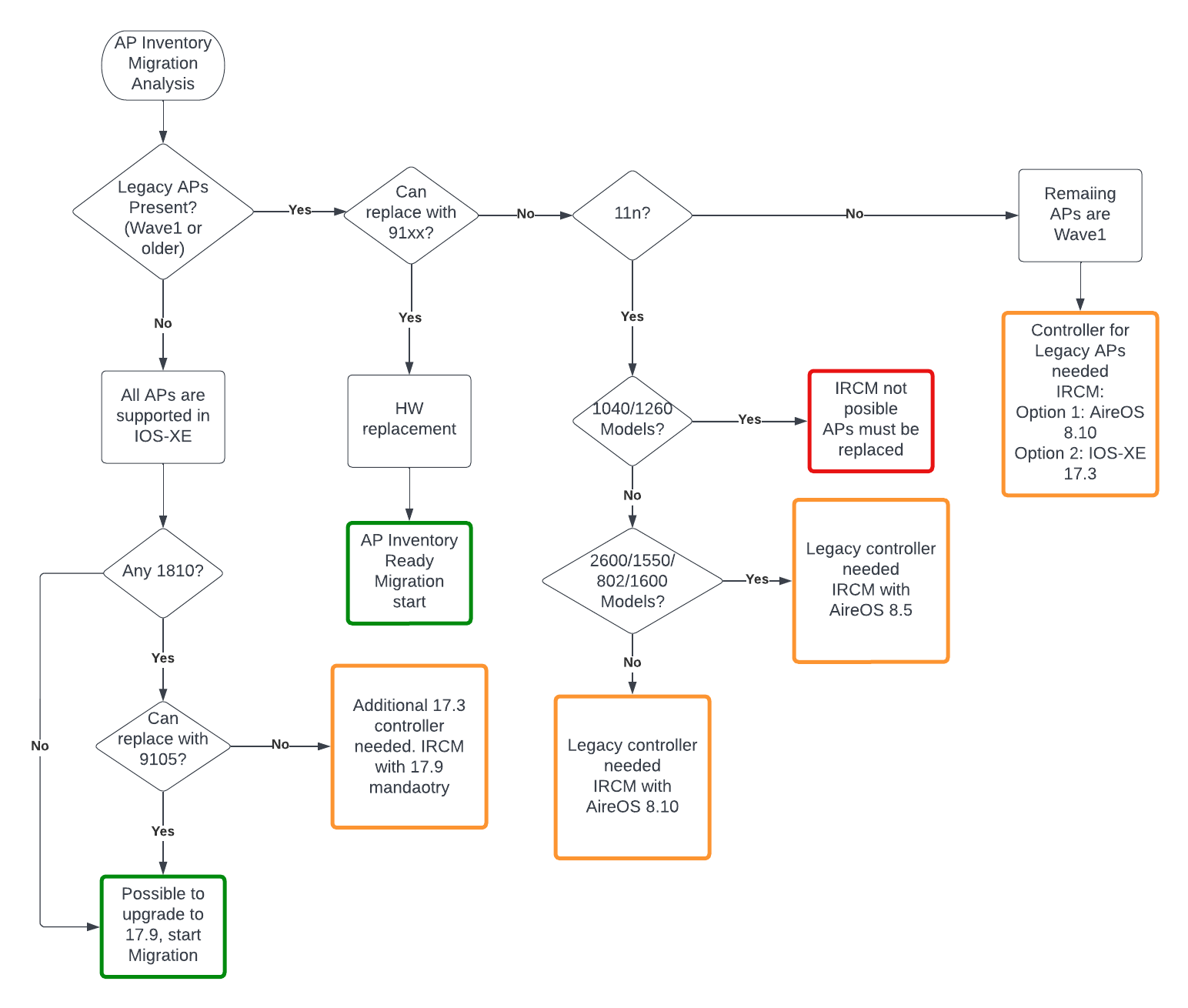 When there are multiple generation gaps, if the legacy controllers can support IRCM to the IOS-XE 9800, it is perfectly possible to design a migration plan, without the need to do a “forklift” installation. This will ensure very little pain to users, and keep the network running until everything is migrated to the new hardware and standards