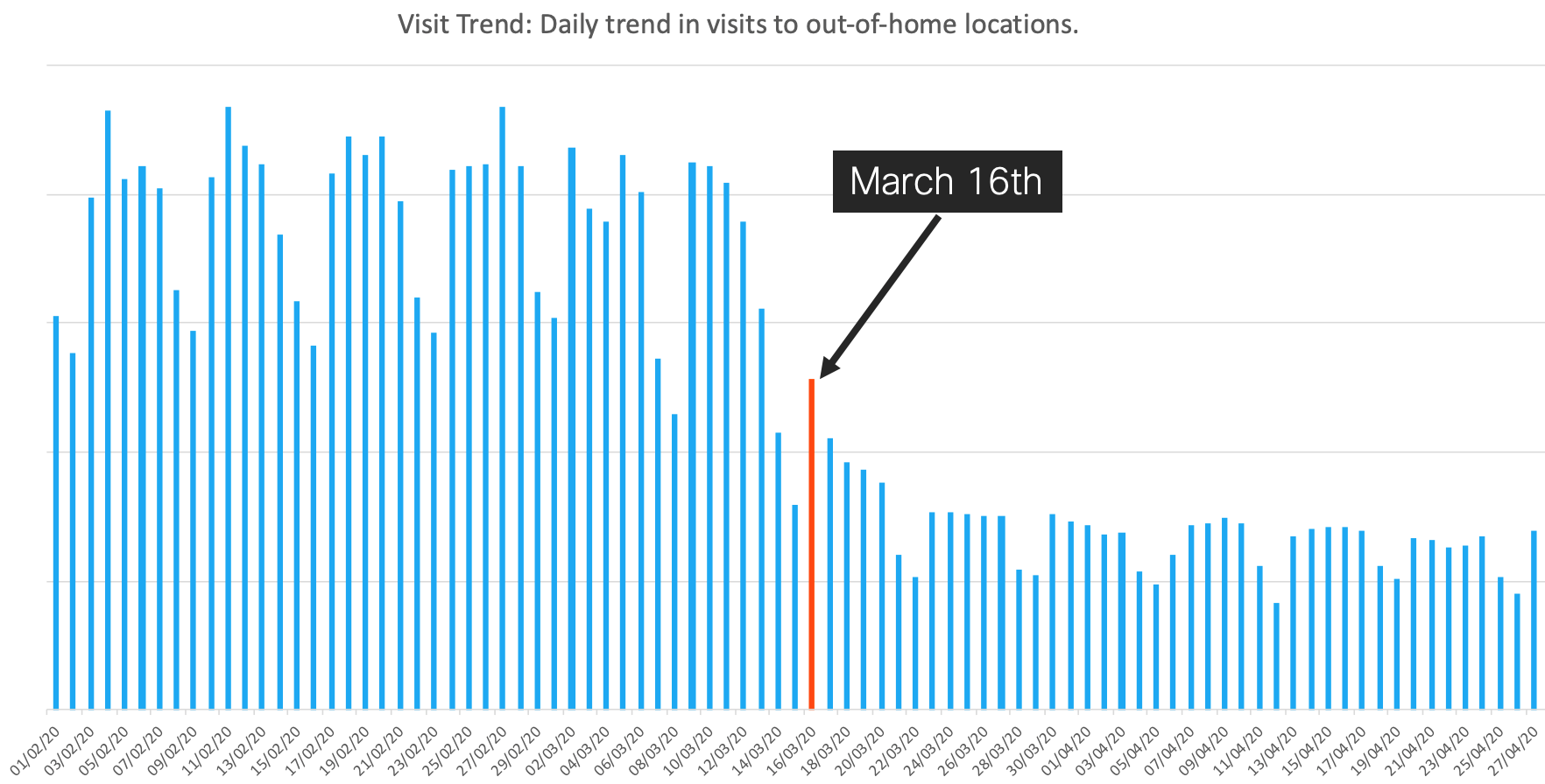 Given the shelter-in-place orders that were mandated in mid-March across many geographies, there was a sudden and severe drop experienced in people density across many businesses and market segments.
