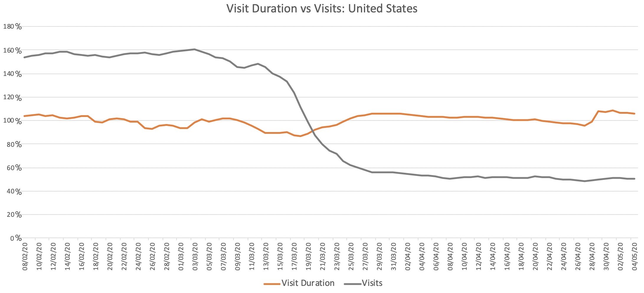We also observe that while the number of visits to retail outlets have fallen during this crisis, the time spent by shoppers per visit to the store has remained largely stable.