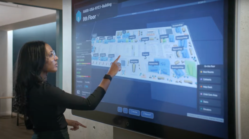 In addition to air quality information, these interactive touch screens can also display vacant meeting rooms and amenities within the building, allowing employees to choose a room based on their comfort preferences.