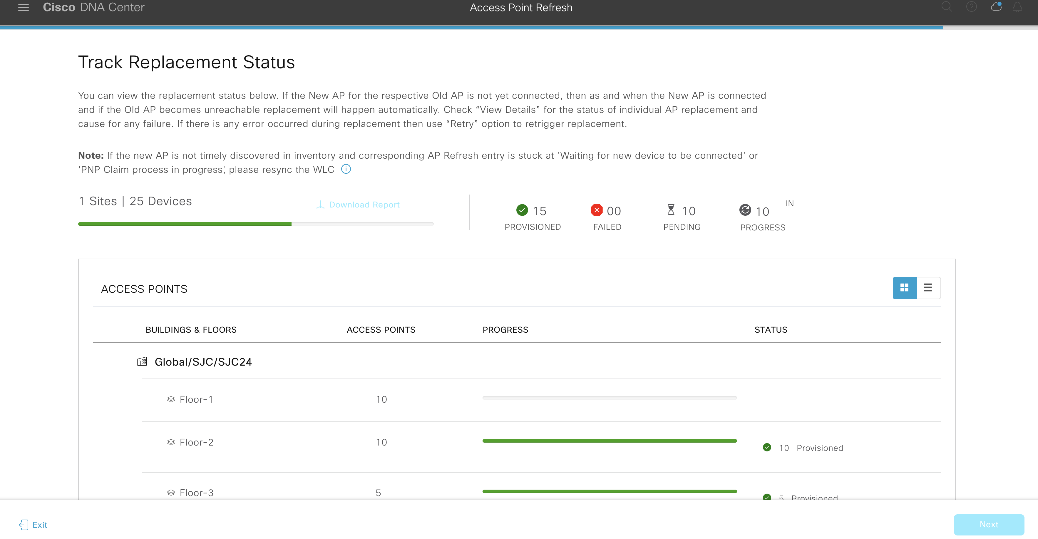 Usually, the network administrator will perform the upgrade activity during the planned maintenance window to prevent the loss of productivity of users. Cisco DNA Center offers a streamlined UI workflow byname “Access Point Refresh” using which the network administrator can conduct the upgrade task more fluidly.