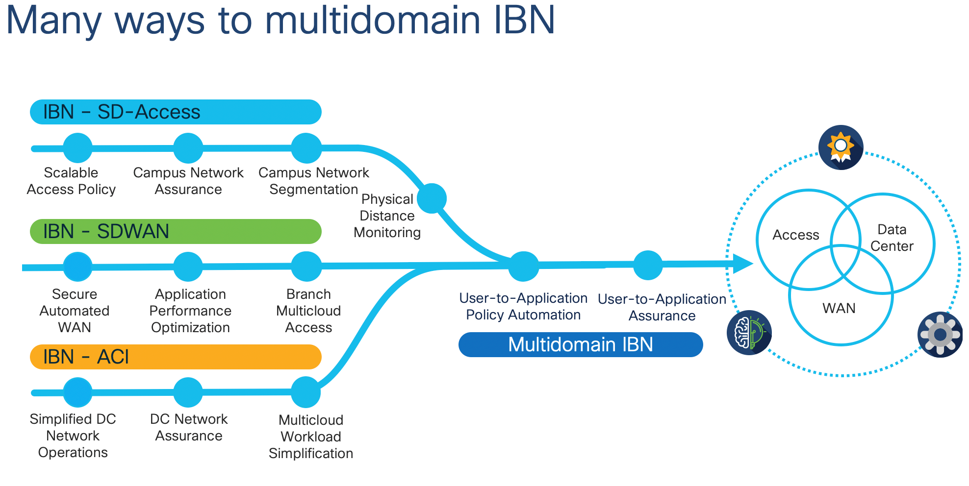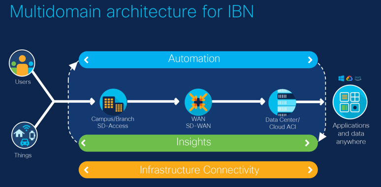 Moving towards a multidomain architecture will not only ease the demands on your IT team but will deliver a better end user experience. Your journey to multidomain for IBN does not mean you need to incorporate all three domains to enjoy the benefits of automation, visibility, and insights. You can start simple and implement a single domain which best fulfils your business requirements.