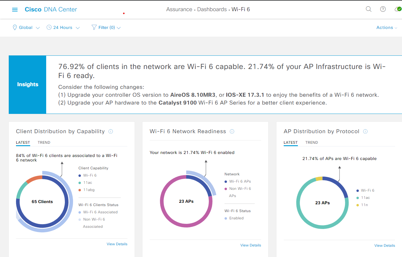 Want to take advantage of the many benefits of Wi-Fi 6? Hesitating because you are not sure exactly what you will gain, what you need to upgrade, and how many devices can take advantage of it? Cisco DNA Center has a new Wi-Fi 6 readiness dashboard that can analyze both your clients and access points, their current density and usage patterns, and figure out how you might gain if you had Wi-Fi 6 instead.