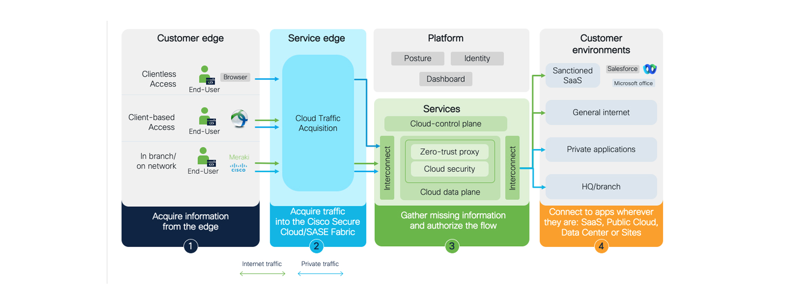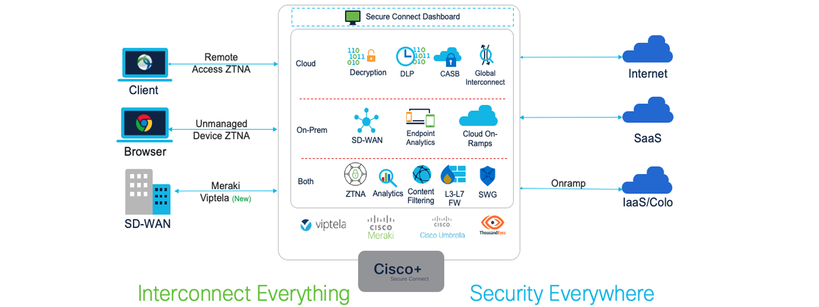 The Cisco+ Secure Connect integration with Cisco SD-WAN and Cisco Meraki SD-WAN, along with strong on-prem security capabilities, enables a truly unified SASE fabric that only Cisco can deliver with its capabilities in on-prem and cloud assets. It helps create a superior application experience with a comprehensive security architecture that enables consistent policies for the hybrid workforce, irrespective of their location, as they access applications hosted anywhere.